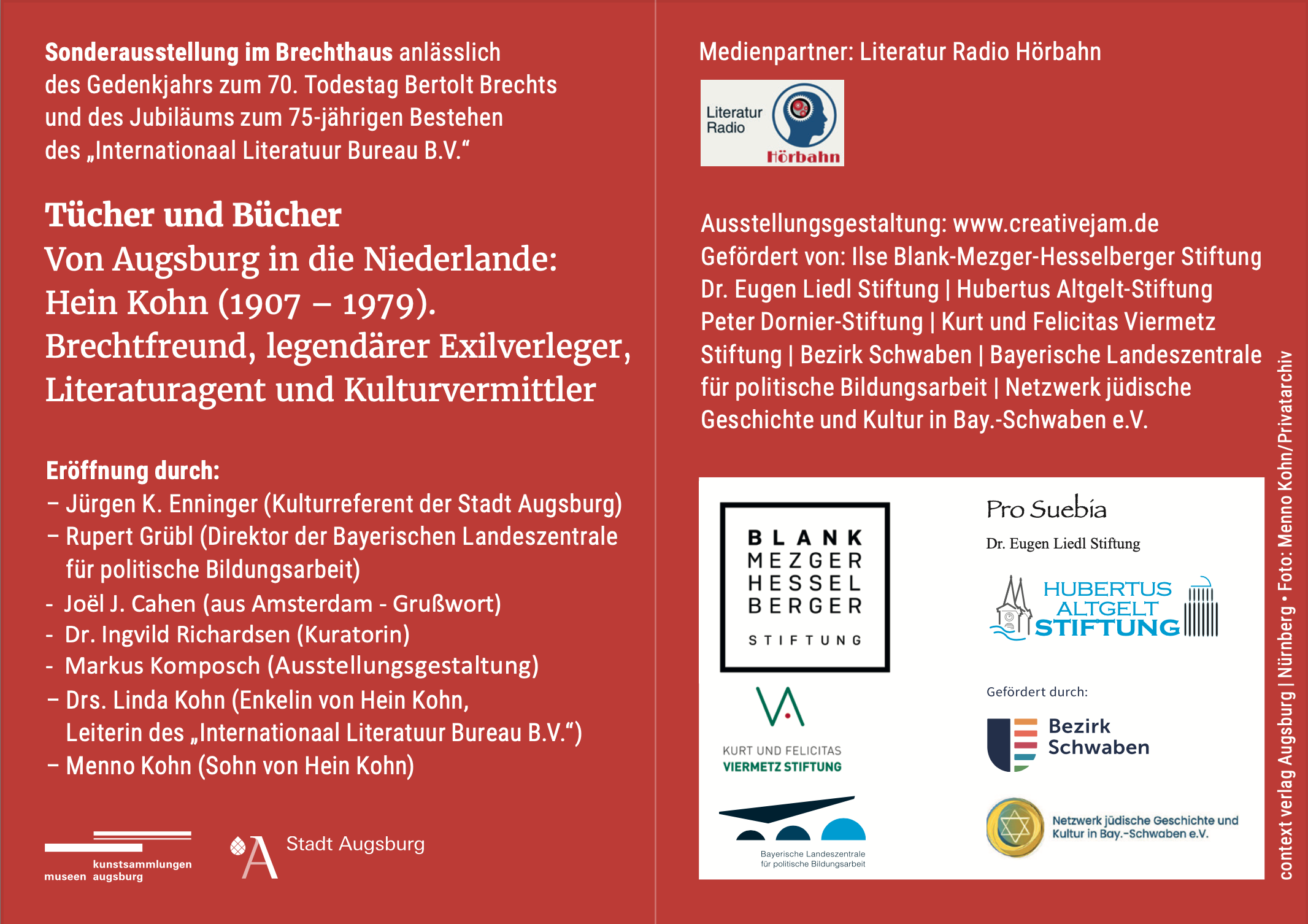 Sonderausstellung im Brechthaus: Von Augsburg in die Niederlande: Hein Kohn (1907 – 1979). Brechtfreund, legendärer Exilverleger, Literaturagent und Kulturvermittler